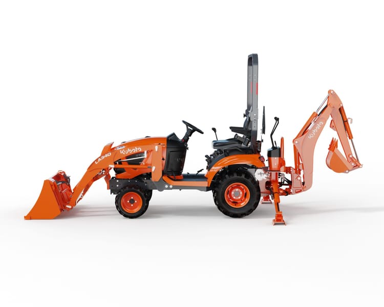 Includes Front Loader & Bucket, Claw Grapple, and Rotary Cutter.